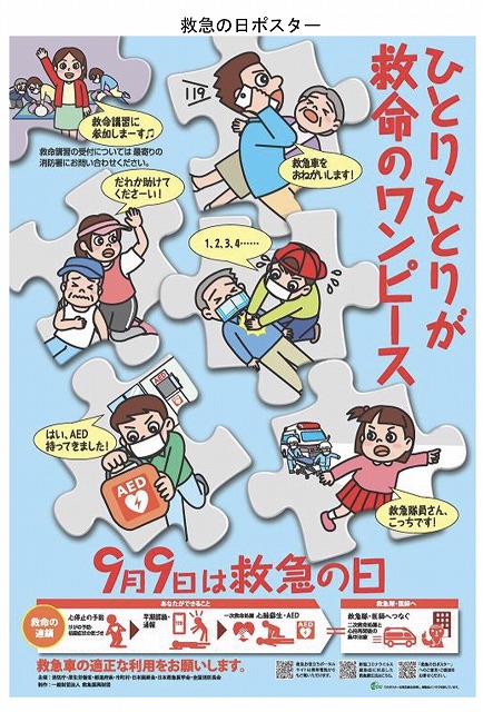 今年度は、現場に居合わせた人がそれぞれの行動で「救命の連鎖」を支える様子を